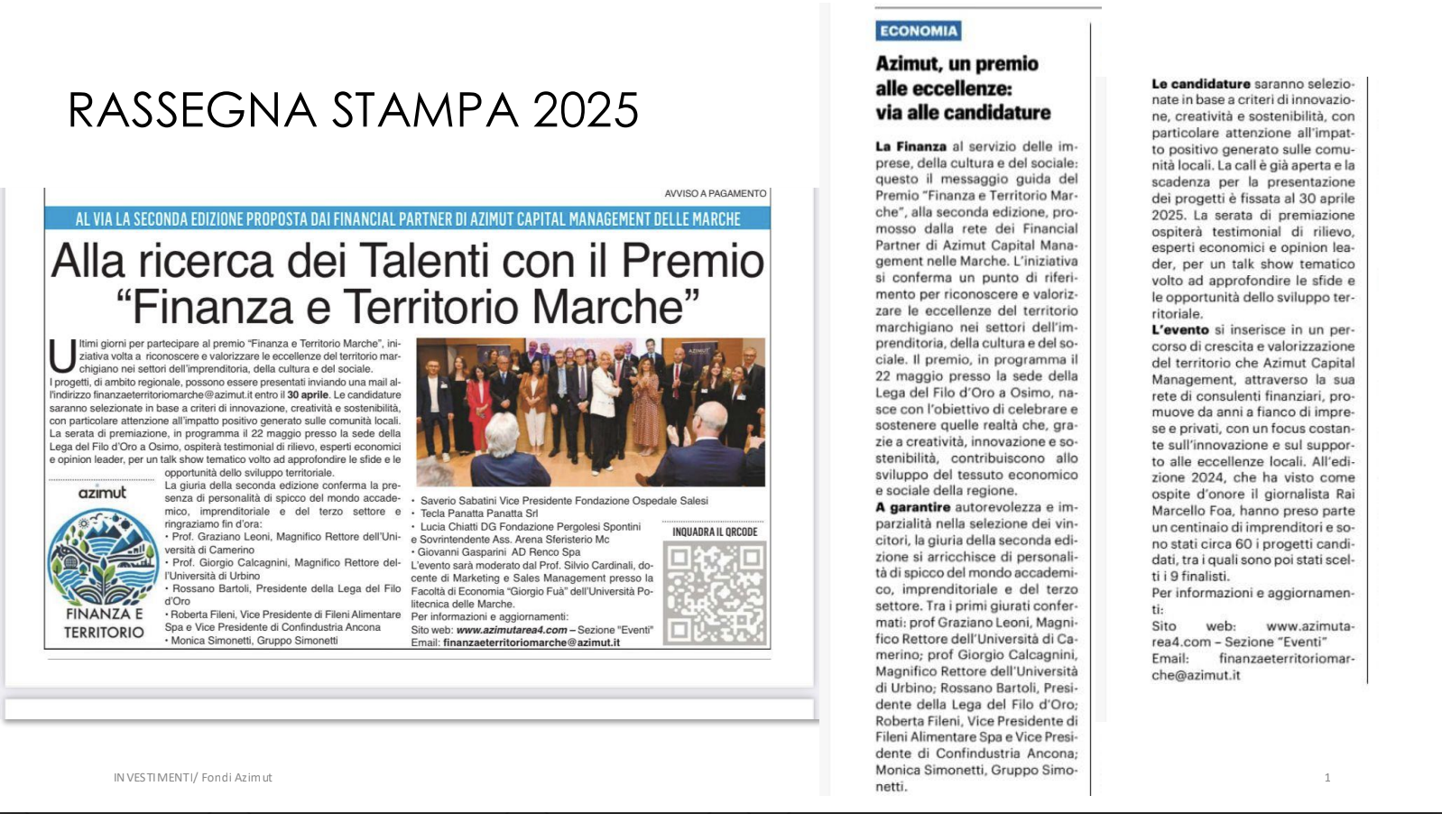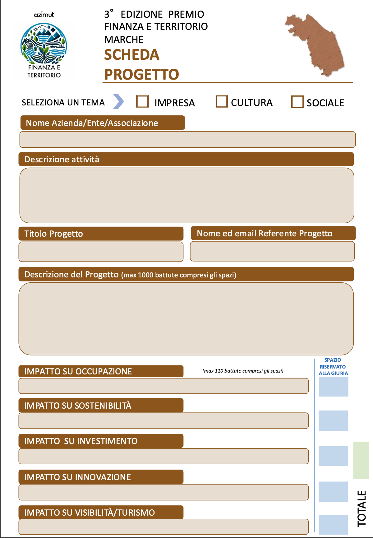 Il Premio Finanza e Territorio valorizza progetti e imprese marchigiane che si distinguono per creatività, innovazione e sostenibilità a beneficio dello sviluppo locale.